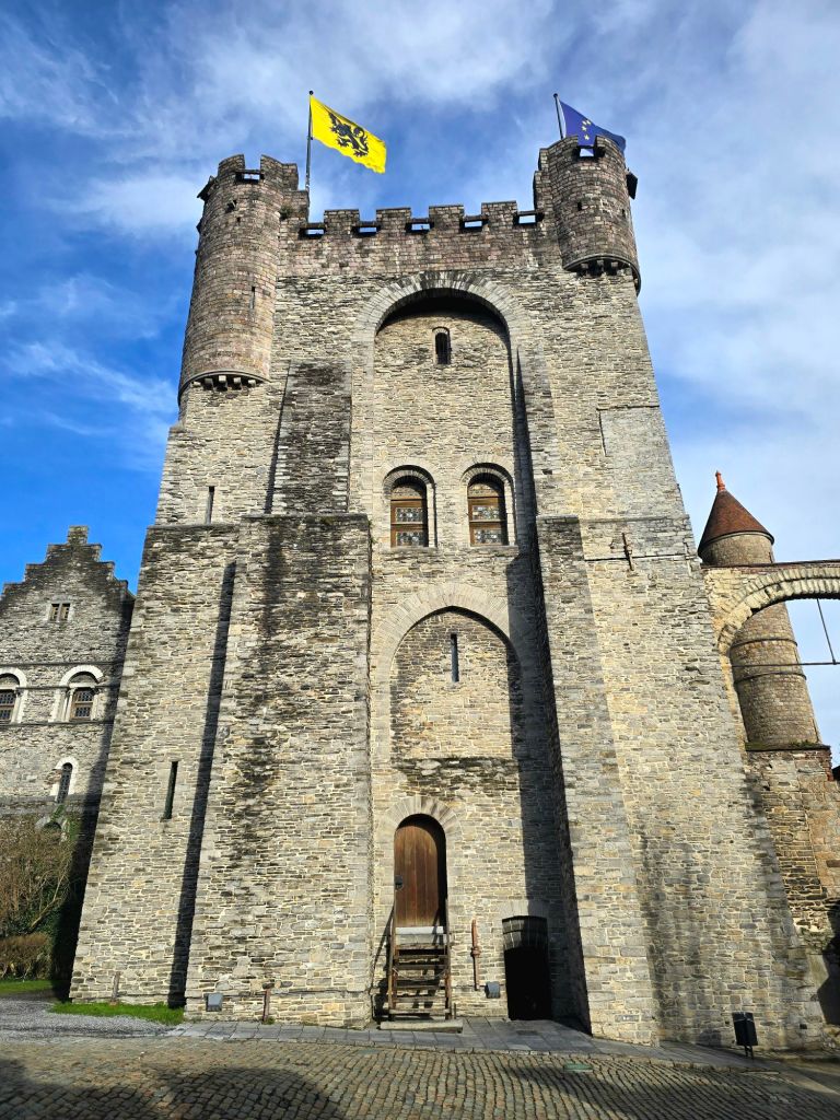 Anyways, back to Ghent. I took a tram to the farthest point, the Gravensteen Castle. Holy Moly! It was epic! Sitting right at the edge of a canal and dominating the landscape, I obviously had to go inside and explore. It was a fairly steep entry fee, but there was a free audio tour included, and one of the options was a comedy tour, which I chose. My favorite fun fact from this castle was a hole in the floor that was allegedly used to throw prisoners into an exit-less pit. I wonder though, if enough people were tossed in, could you stand on each other’s shoulders and climb out? 🤔
