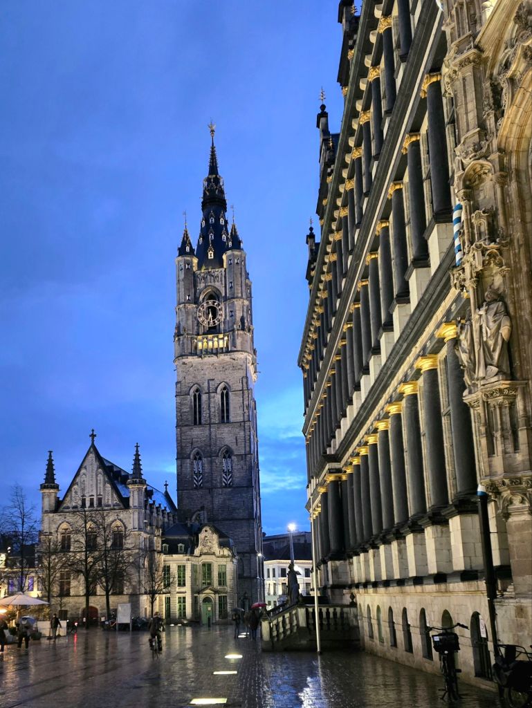 After the grand castle tour, I walked around to see the rest of Ghent. Gorgeous buildings, and so many reminded me of things straight out of Harry Potter. Magical, to say the very least. One building in particular, I essentially went out of my way to find, only to discover it was covered in scaffolding, lol. Positives of traveling in the off season: fewer crowds. Negatives: plenty of construction. 😂 This wasn’t the first historic building I was excited to see that was hidden behind layers of construction materials. I’m pretty sure I’d still take off-season than in the middle of the summer, though. 😅