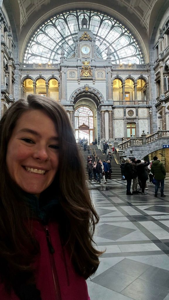 I walked to the central station in Brussels and bought my ticket to Antwerp. Found the train, and I was off! What should’ve been a fairly quick ride took forever… Apparently I was on the train that stopped at ALLLLLLL the stops along the way. Hah! I didn’t even think to check that. I must’ve lucked out with all the other local trains I’ve been taking. 😅