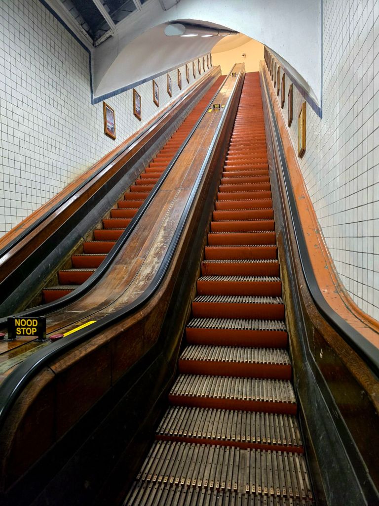 I found a cool tunnel on Google Maps that was quite old and had a wooden escalator! Soooo, I strolled over there and went down. It was very cool! And VERY loud, haha. I rode two escalators to the bottom and contemplated walking the length of the tunnel. Part of me just really didn’t want to. But then I thought, but if I walk all the way across, surely there will be a great view of the city from the other side of the river. Okay. I’m going. So begin the long walk. It was extremely busy, mostly with people on bikes, but clearly, it serves the city well.