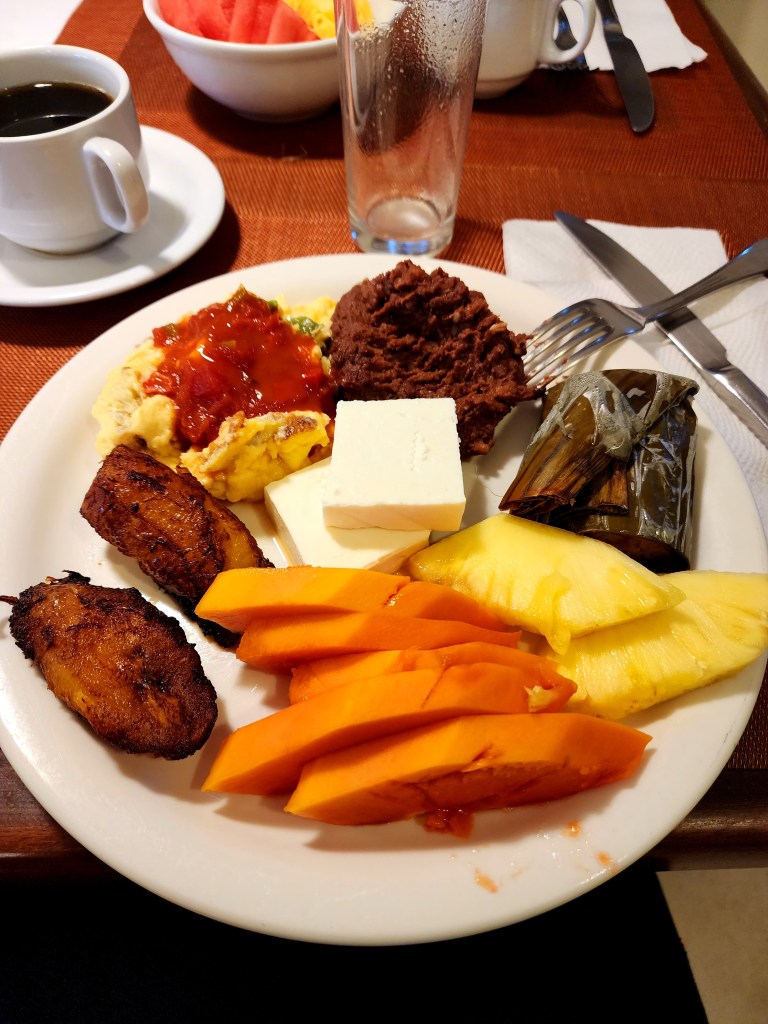 Today, we woke up and went straight to the breakfast that was included in our hotel. So good! Beans, eggs, plantains, cheese, and tamales. Oh, and of course, coffee!