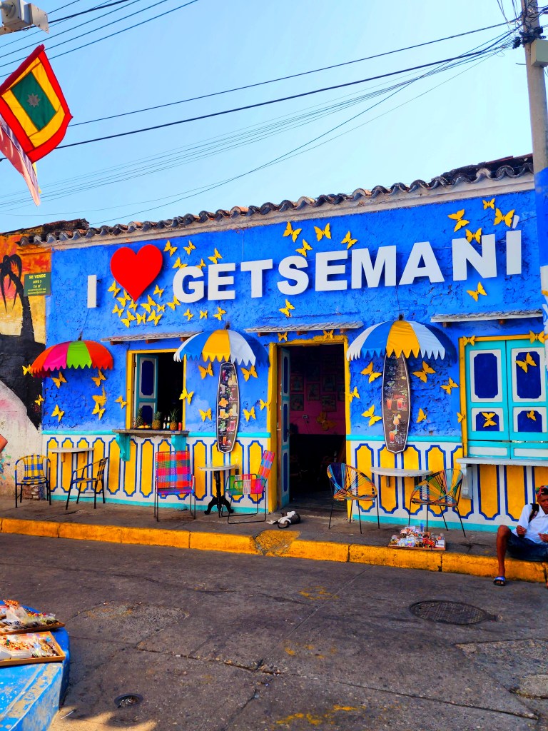 Getsemani was a funky, colorful little place. We got dropped off at the far end of it, and we just started walking and exploring the side streets covered in murals. There were a few streets that were decorated with flags, umbrellas, and even kites! We had fun taking pictures and getting in each other’s way when framing the perfect shot haha.