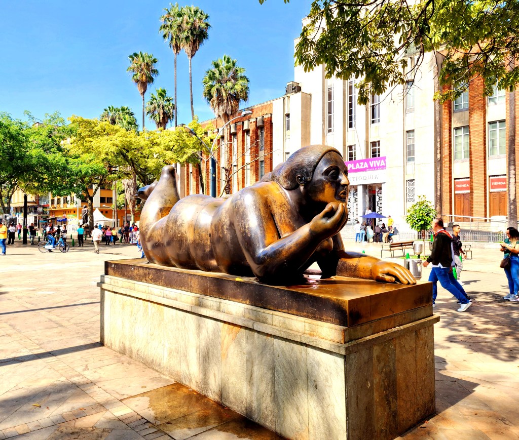 The Plaza Botero is the very heart of the city, and the plaza has several statues from a Colombian artist, Fernando Botero, who exaggerates the shapes of his subjects, mostly humans and animals. Back in Cartagena, we saw so many paintings of quite voluptuous ladies, and we wondered what the story was. I finally googled it, and found out about the artist. Aha! It all makes sense now hehe.