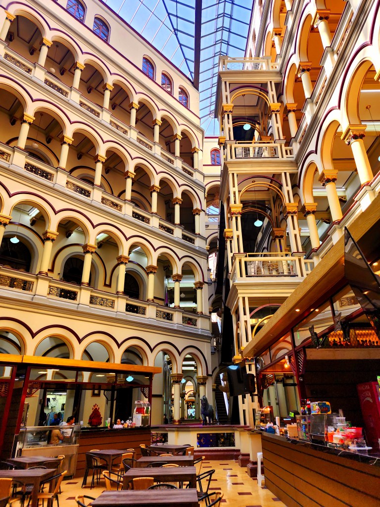 Dana found a neat picture of a place in the old National Palace, which has been converted into a kind of bazaar. We walked inside, and it was stunning! I really didn’t expect to see something like that. It was a decadently designed building, complete with multiple floors and chandeliers. It reminded us a bit of something we’d see in a Harry Potter movie, perhaps. We spent some time walking around and gawking at the beautiful architecture.