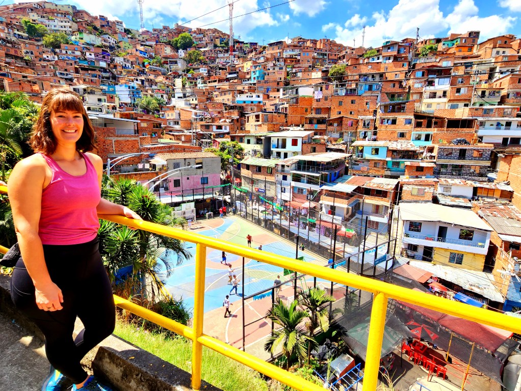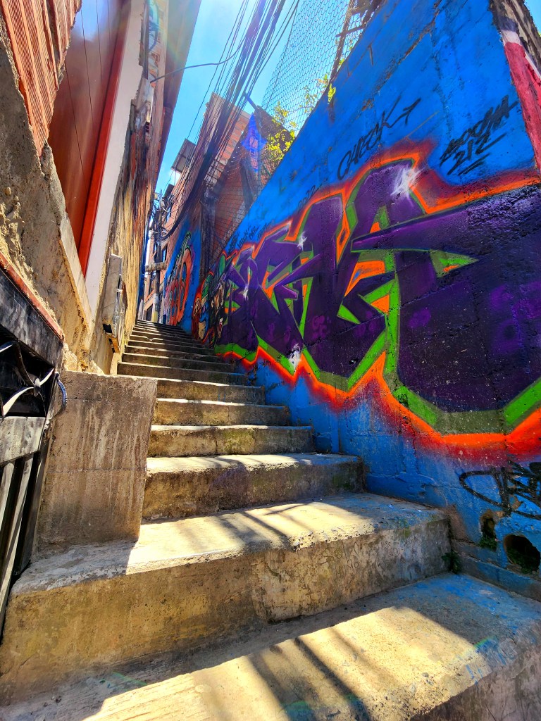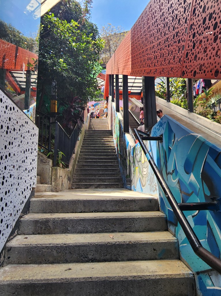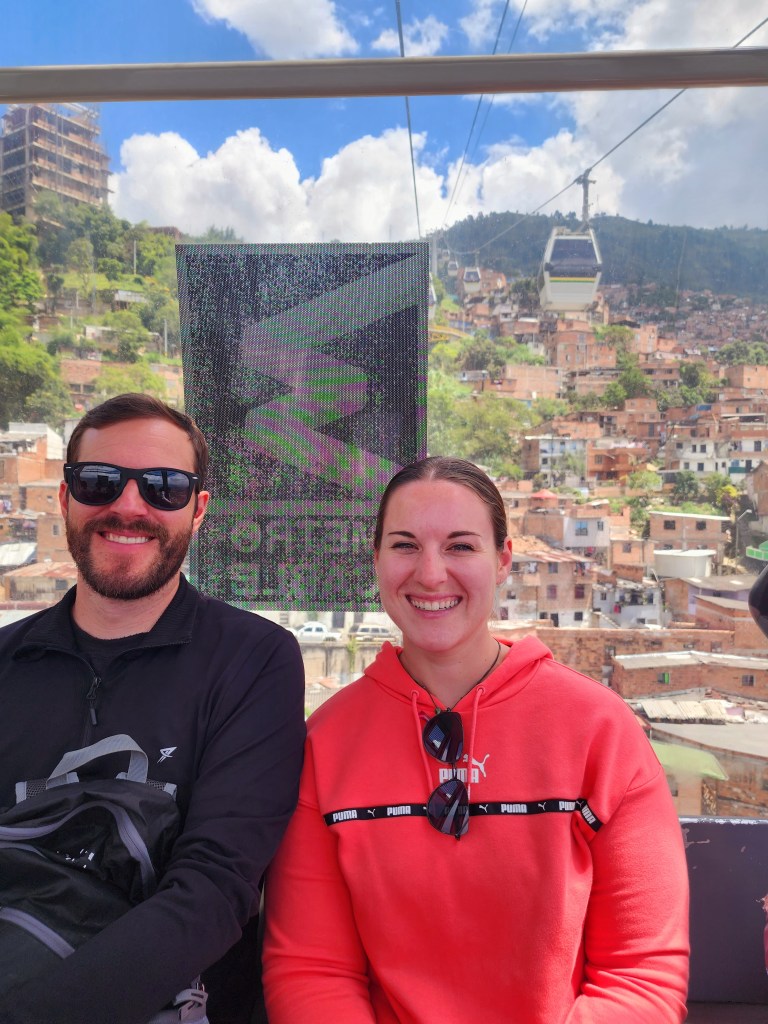 We head back down the cable car, and we have a good time trying to get the perfect photos and videos, although the dirty windows made it difficult. We also decided it’d be best not to ask an Uber to come up the harrowing streets Lorena had to endure for us, so we bought tickets for the metrocable, another cable car, but this one is part of the Medellin metro line. So cool! I don’t know of any other cities that have metros that include cable cars. What a fun experience!