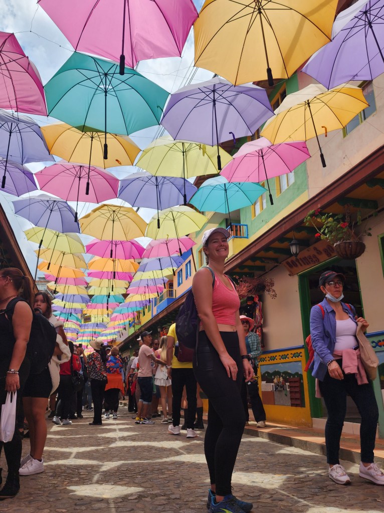We get to the bus station, ready to purchase our tickets for the 12:00 bus, and we’re told that there is a taxi protest going on in Pereira, causing all kinds of traffic issues, so there were less busses available than normal. They usually leave every hour from Salento, but today, the next one is at noon. That feels like it’s cutting it close for our 3:45 flight, as we’re expecting the ride back to Pereira to take longer than an hour, especially knowing that the protests are going on. While we’re discussing other options, like grabbing an Uber, another guy over hears us and offers to take us on an 11:40 bus, that is meant to go direct to Medellín, but they will make a stop in Pereira for a handful of us who were trying to get there. Sweet!