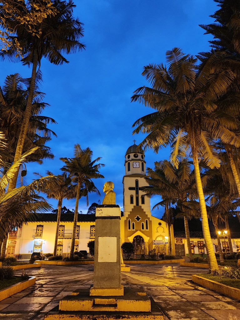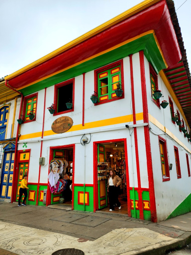 The next morning, we didn’t have to rush to get up, which was such a nice change. We were planning on taking the noon bus back to Pereira, where we would be catching a short flight to Bogotá. Before heading to the bus terminal, we walked around town one last time. At this point, it seemed as though most of the tourists had taken the Jeeps to the Cocora Valley or to the coffee farms that were just outside town. The streets were emptier than we’d seen them, and we looked for a place to have a cup of coffee. Dana introduces me to a macchiato, and it’s so cute! Like a mini cappuccino! Hehe. Dana said it’s a great travel day drink since it’s smaller and better for having fewer pee stops readily available, lol.