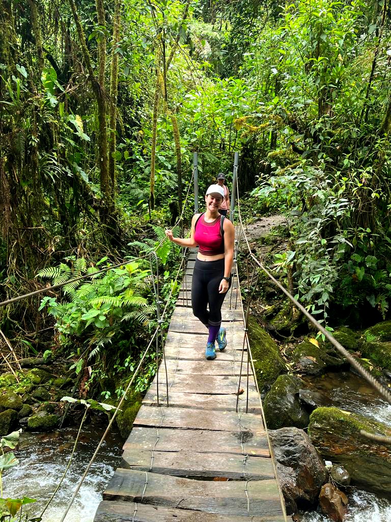 Walking through the farmland and where the tall Cocora trees are located was so peaceful and beautiful! I couldn’t get over how tall these trees were! We took tons of pictures and were keeping our eye out for lookout points to snag the most scenic photos we could. We make our way to one lookout point and spend a little extra time there, having a few snacks, and Dana gave some clean water to Charles (his short hand name, lol). As we were finishing up, we noticed how quickly the clouds began moving into the valley. It was amazing to watch! The clouds filled in everywhere we could see, hiding most of the farmland, palm trees, and the big mountain peak in the distance. I’m glad we got our pictures when we did! Hehe. And so glad we started with the palm trees first, as we would’ve risked not seeing them at all.